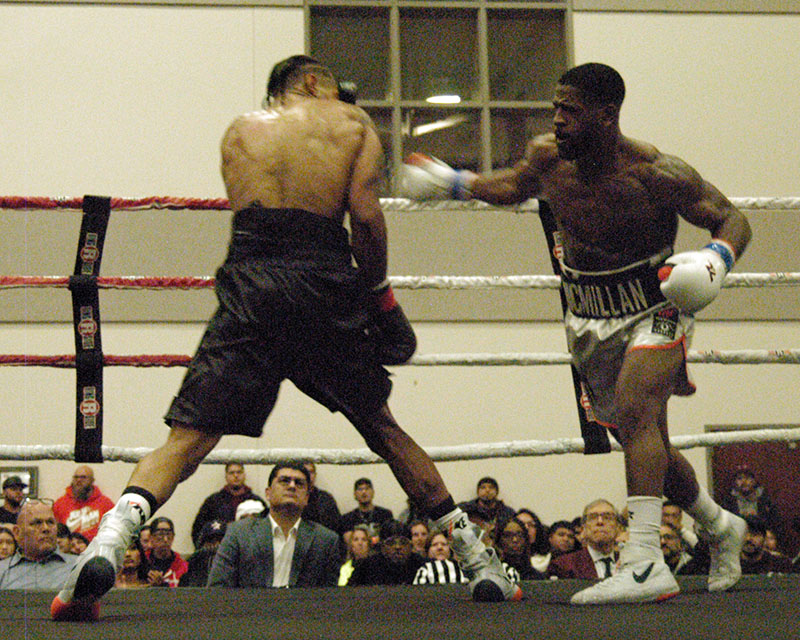 Mike McMillan and Keith Heath moved into the professional ranks to open the show after brief stints as amateur fighters. Heath last fought as an amateur in 2019, while McMillan's last amateur fight was in 2023. This fight was a four round affair in the light heavy weight division.There were not a lot of punches that landed in the opening round. Heath was content to throw his jab to keep McMillan from stepping close. McMillan answered throwing combinations late in the round. McMillan had a solid second round after he backed Heath on to the ropes and began landing scoring shots to Heath's body.Heath returned to suing his jab in the third round, and he was effective in slowing McMillan's attack, and with the distance he created, Heath was able to land scoring shots when he stepped in close. McMillan threw fewer combinations, resorting to throwing his right, looking to land a hard punch. McMillan put together a solid assault in the fourth round as he was able to return to throwing combinations that landed effectively. As the round drew to an end both men were throwing wide and wild punches, looking to land something that would bring the fight to an end.After four rounds, all three judges cored the fight 39-37 for McMillan who would claim the unanimous decision victory. |