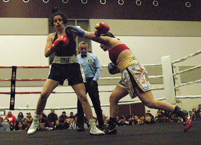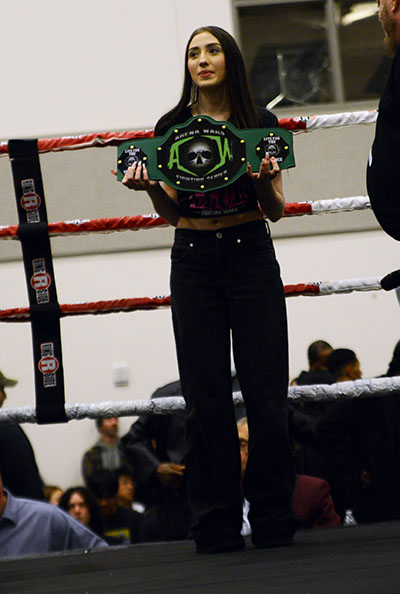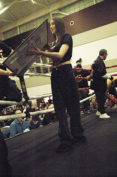 Sometimes strange things happen at a boxing show, like the ring girls don't show up. However, finding someone in the crowd to take the job proved to work out for this version of Arena Wars. |