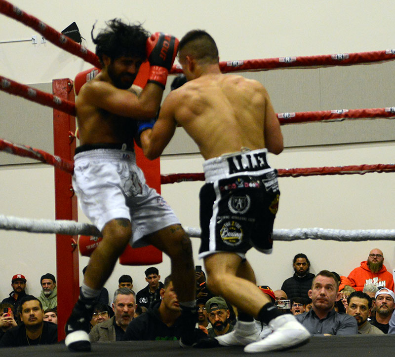 The women's super flyweight bout pitting Anne Maxwell against Kathlyn Martinez looked interesting on a number of accounts. First, it has been a while since there has been a women's fight of consequence in Pacific Northwest. Second, Martinez had not been in the ring since 2021, and all three of her previous wins had come while fighting in Mexico. Third, Maxwell was making the move from kick boxing to boxing, but she had fought only once as an amateur kick boxer in 2014. So the question was, who would prove to show they belonged in the ring as a boxer.Martinez answered the opening bell and quickly made her way across the ring to throw punches at Maxwell. Martinez threw with both arms and as she moved to smother Maxwell, giving her few opportunities to respond. Maxwell did cover up, and blocked many of Martinez' punches, but enough of them found a target on Maxwell's body to back her into the corner. With Maxwell covering up in the corner, Martinez threw her left and right, swinging from outside in, to land shots to Maxwell's body. Maxwell was able to slip out of the corner, but Martinez backed her onto the ropes and again landed a barrage of body shots. The referee stepped in close to watch, and though Maxwell was covering up, and did not appear to be hurt, she was unable to convince the referee who waved the fight to an end at 1:44 of the opening round.Kathlyn Martinez would remain unbeaten with the TKO victory. |