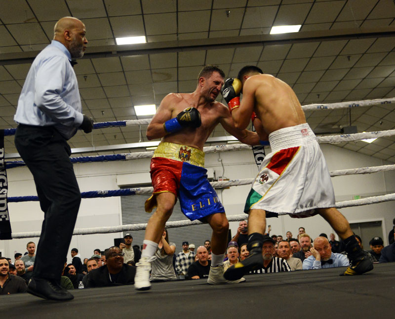 Once again promotor Matt Phillips and match maker Keith Weir put on a show that entertained the sold out building while offering ten fighters and two kick boxers the opportunity to step into the ring and delight fans.Unbeaten Piotr Apostol faced Andres Reyes in the main event scheduled for six rounds. Reyes entered carrying wins in five of his last seven fights.The opening round was close as both men moved well to create angles from which to land body shots. Reyes fought to a slight advantage in landing more heavy shots, though Apostol started to connect and inflict damage as the round drew to a close. Apostol gained some momentum in the second round and controlled the action as he began to double up on the body shots, breaking down Reyes defense. Late in the round Reyes pinned Apostol in the corner, and while Reyes did land punches to Apostol's body, Apostol fired back eventually making Reyes back away.Apostol answered the bell for the third round firing hard body shots, most of which landed. Apostol landed a solid right to Reyes' body just prior to the one minute mark that dropped Reyes to the canvas. Reyes rose and continued to fight, but Apostol closed the distance between the two and landed another barrage of body shots. When Apostol landed another heavy right a minute later, Reyes again dropped to the canvas and was slow to attempt to rise. The referee stepped in and waved an end to the fight at 1:54 of the third round.Apostol would remain unbeaten and claim the Arena Wars belt, winning by TKO at 1:54 of the third round. |