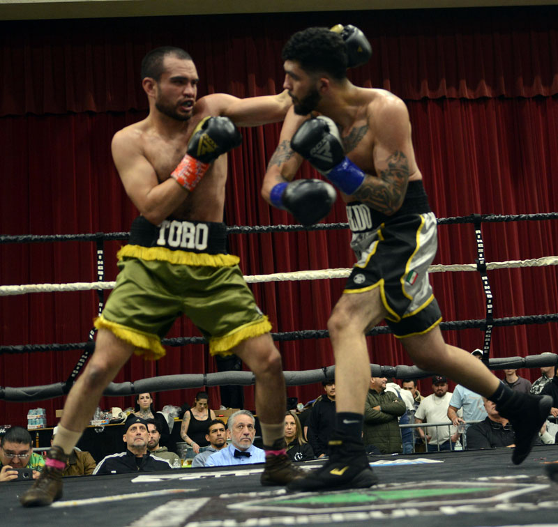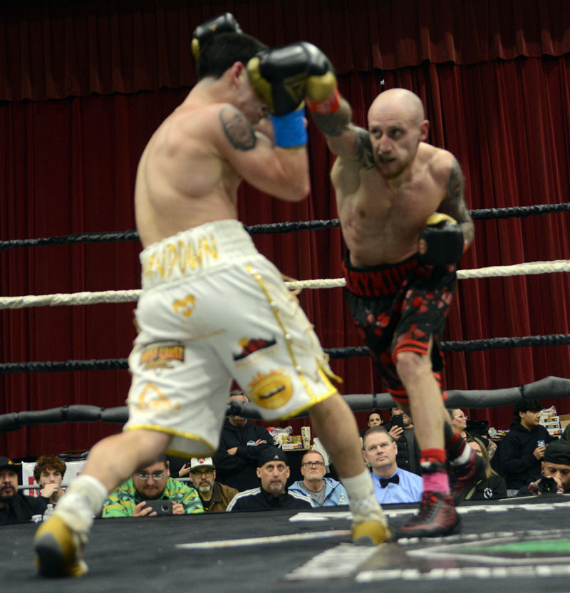 There were a lot of punches thrown in the third round, though few of them landed with any power. Both men moved well, but in so doing they also limited their ability to land scoring punches. Yakymuik controlled the action of the fourth round as he kept Ojeda moving, As the round wore on, a trickle of blood began to flow from Ojeda’s hairline, and while it did not appear to affect his ability to see, it did slow his punch output.