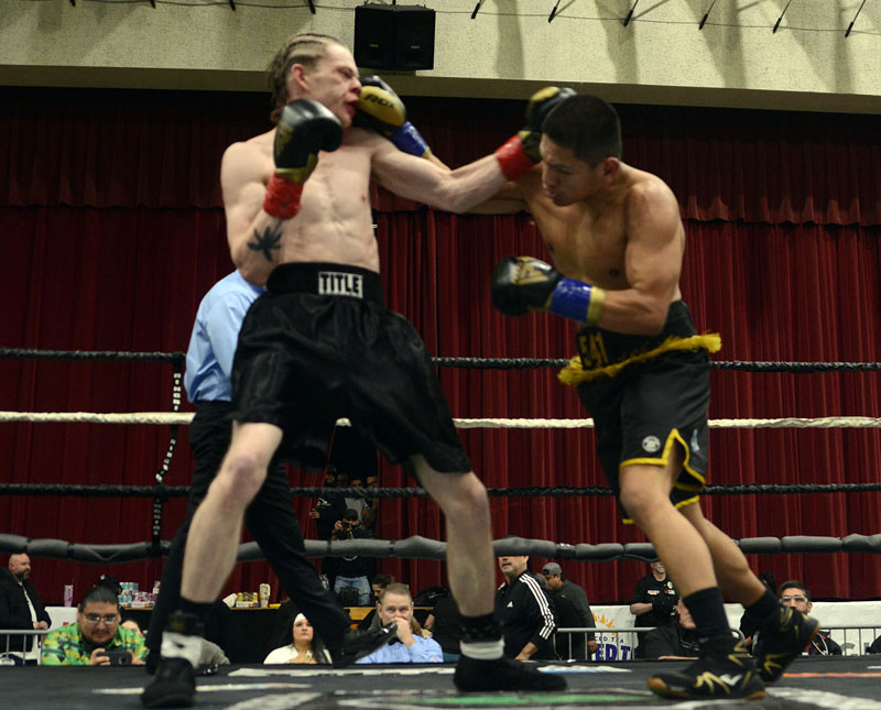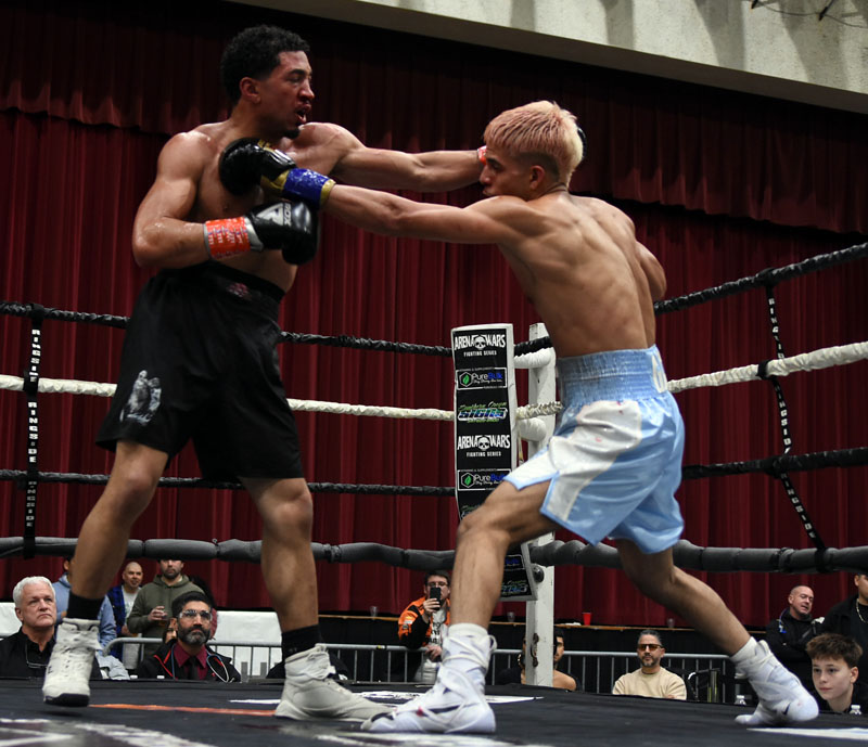 Funkhouser showed the had been taking his coach’s advice early in the opening round as he shot his straight right at Hernandez and was able to land many of them. Hernandez spent the opening moments of the round moving away from Funkhouser and avoiding getting hit. Hernandez, at the midpoint of the round found some rhythm in his movement and punches and he began to land hard shots to Funkhouser’s body as the round drew to an end. Hernandez controlled the action in the second round as he pressured Funkhouser keeping him on the move. As the round drew to a close, Hernadez backed Funkhouser on the ropes and landed a flurry of body shots that forced Funkhouser to cover up. As Hernandez continued the assault and Funkhouser could not answer, the referee stepped in and waved the fight to an end.