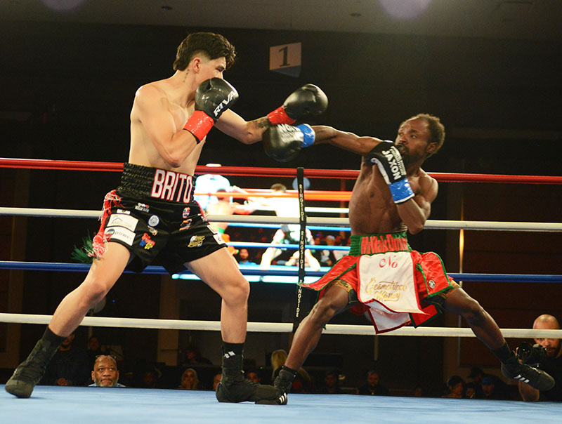 Brito used his left jab to get in close early in the first round. On one of those trips in close Brito landed a right body shot that staggered Adams and dropped him. The fight resumed and the two men stepped to the center of the ring and began to exchange punches, though Brito had the advantage in landing more hard shots. Brito landed a left to Adam’s body and followed that with a right to knock Adams across the ring. Adams’ left arm hung down as he winced in pain. The referee stepped toward Adams, asked if he wanted to continue, but Adams could not and the fight was waved to an end.
