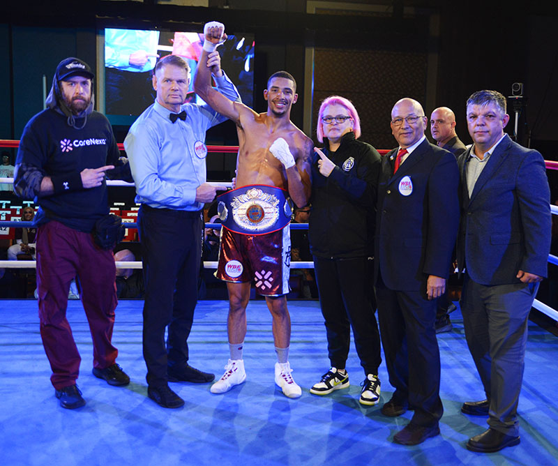Team Thompson celebrates the win for the WBF Super Welterweight Title |