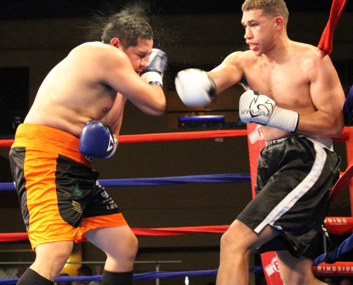 An exciting back and forth battle opened the pro card, with Great Falls, Montana's Billy Wagner (1-0) making a successful entrance into the paid ranks, claiming a four round unanimous decision win over Lewiston, Idaho's Andrew Whitfield (1-1, 1 KO). It looked like Wagner might have a quick night when, early in the first round, a left hook sent Whitfield down for a count. Moments later, a left hook counter deposited him on the canvas once again. Whitfield weathered the early set-back and began to cut the distance with a more measured approach as the round wore on, though, finding success with clean hooks in close.