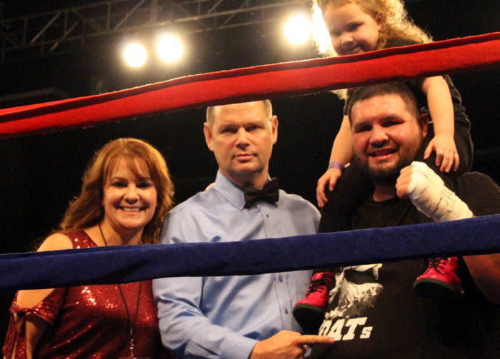 Event Coordinator Sarah Welliver, Referee Joel Scobie with Chauncey and Lemyn Welliver |