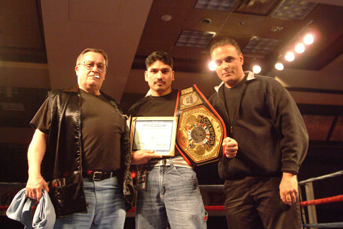 Here are three of the most stellar men in Pacific Northwest boxing, Wally Jorgenson, trainer and manager: Rafael Ortiz, boxer; and Sam DiTusa, trainer and manager.