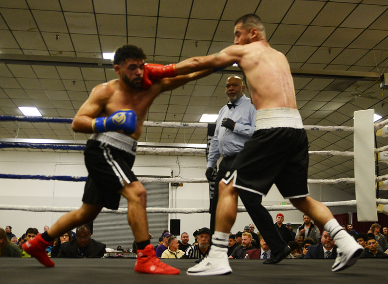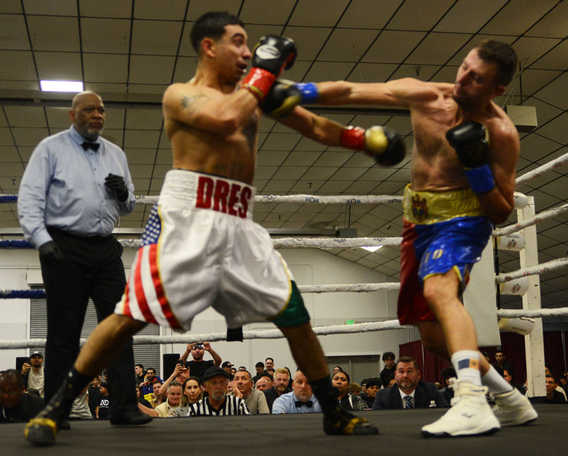 Once again promotor Matt Phillips and match maker Keith Weir put on a show that entertained the sold out building while offering ten fighters and two kick boxers the opportunity to step into the ring and delight fans.Unbeaten Piotr Apostol faced Andres Reyes in the main event scheduled for six rounds. Reyes entered carrying wins in five of his last seven fights.The opening round was close as both men moved well to create angles from which to land body shots. Reyes fought to a slight advantage in landing more heavy shots, though Apostol started to connect and inflict damage as the round drew to a close. Apostol gained some momentum in the second round and controlled the action as he began to double up on the body shots, breaking down Reyes defense. Late in the round Reyes pinned Apostol in the corner, and while Reyes did land punches to Apostol's body, Apostol fired back eventually making Reyes back away.Apostol answered the bell for the third round firing hard body shots, most of which landed. Apostol landed a solid right to Reyes' body just prior to the one minute mark that dropped Reyes to the canvas. Reyes rose and continued to fight, but Apostol closed the distance between the two and landed another barrage of body shots. When Apostol landed another heavy right a minute later, Reyes again dropped to the canvas and was slow to attempt to rise. The referee stepped in and waved an end to the fight at 1:54 of the third round.Apostol would remain unbeaten and claim the Arena Wars belt, winning by TKO at 1:54 of the third round. |