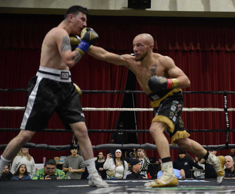 Funkhouser showed the had been taking his coach’s advice early in the opening round as he shot his straight right at Hernandez and was able to land many of them. Hernandez spent the opening moments of the round moving away from Funkhouser and avoiding getting hit. Hernandez, at the midpoint of the round found some rhythm in his movement and punches and he began to land hard shots to Funkhouser’s body as the round drew to an end. Hernandez controlled the action in the second round as he pressured Funkhouser keeping him on the move. As the round drew to a close, Hernadez backed Funkhouser on the ropes and landed a flurry of body shots that forced Funkhouser to cover up. As Hernandez continued the assault and Funkhouser could not answer, the referee stepped in and waved the fight to an end.